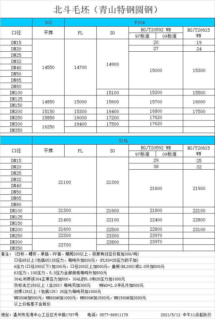 不銹鋼毛坯價(jià)格304、316L所有系列再次上調(diào)300元
