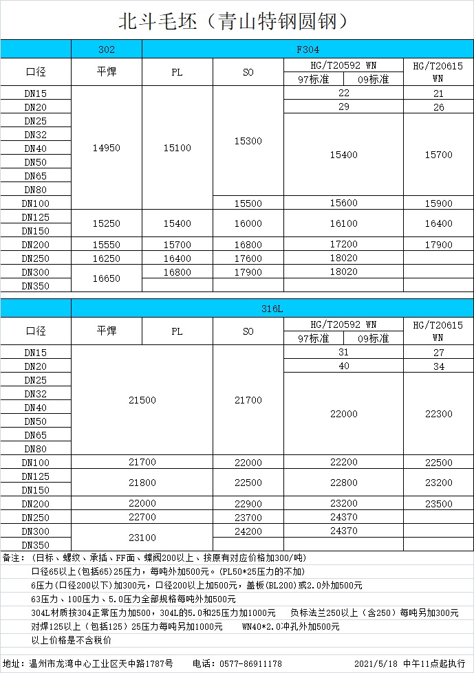 不銹鋼毛坯價格304、316L所有系列再次上調(diào)200元