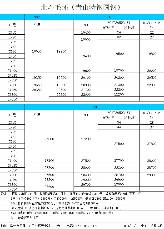 不銹鋼毛坯價(jià)格304、316L所有系列上調(diào)200元